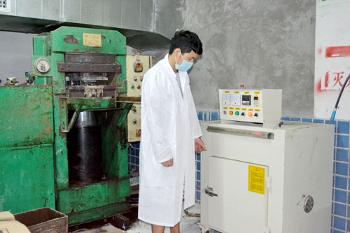 工作人员正进行机器检测